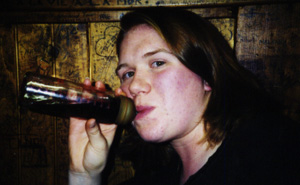 at a fondue restaurant. They serve wine out of baby bottles at the place, so